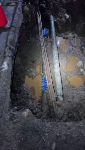 After the initial repair was completed, a second leak developed on the same line at a nearby location. Crews then had to repeat the excavation and repair process a second time. Due to these combined challenges, repairs were not fully completed and water service was not restored until approximately 11:00 p.m.